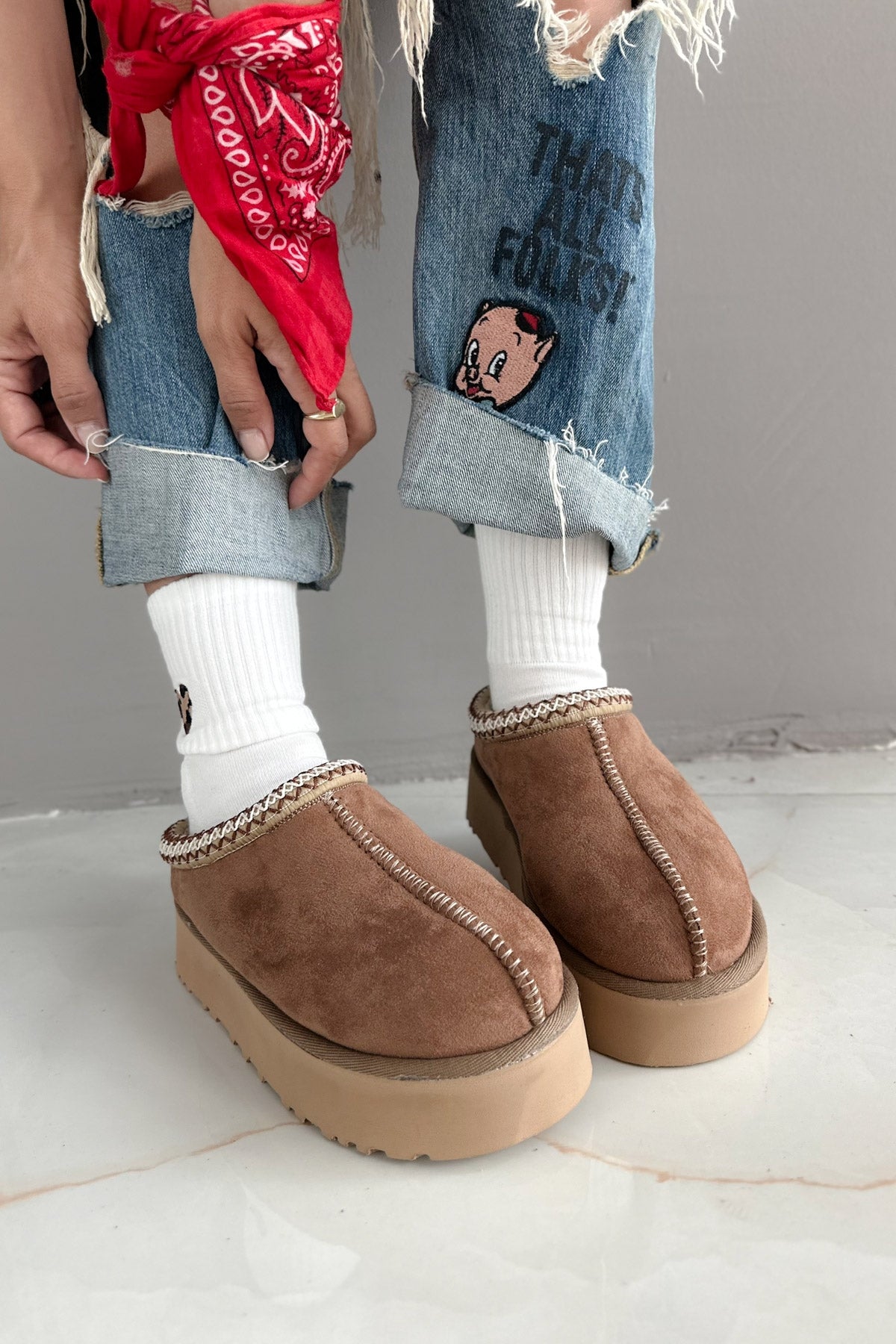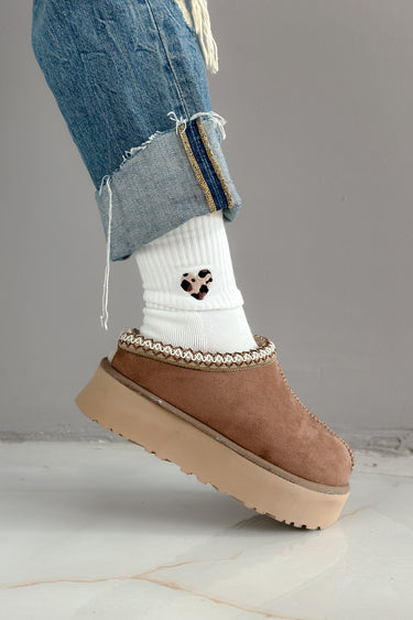 Migo Taş Rengi Peluş Kışlık Kadın Terlik