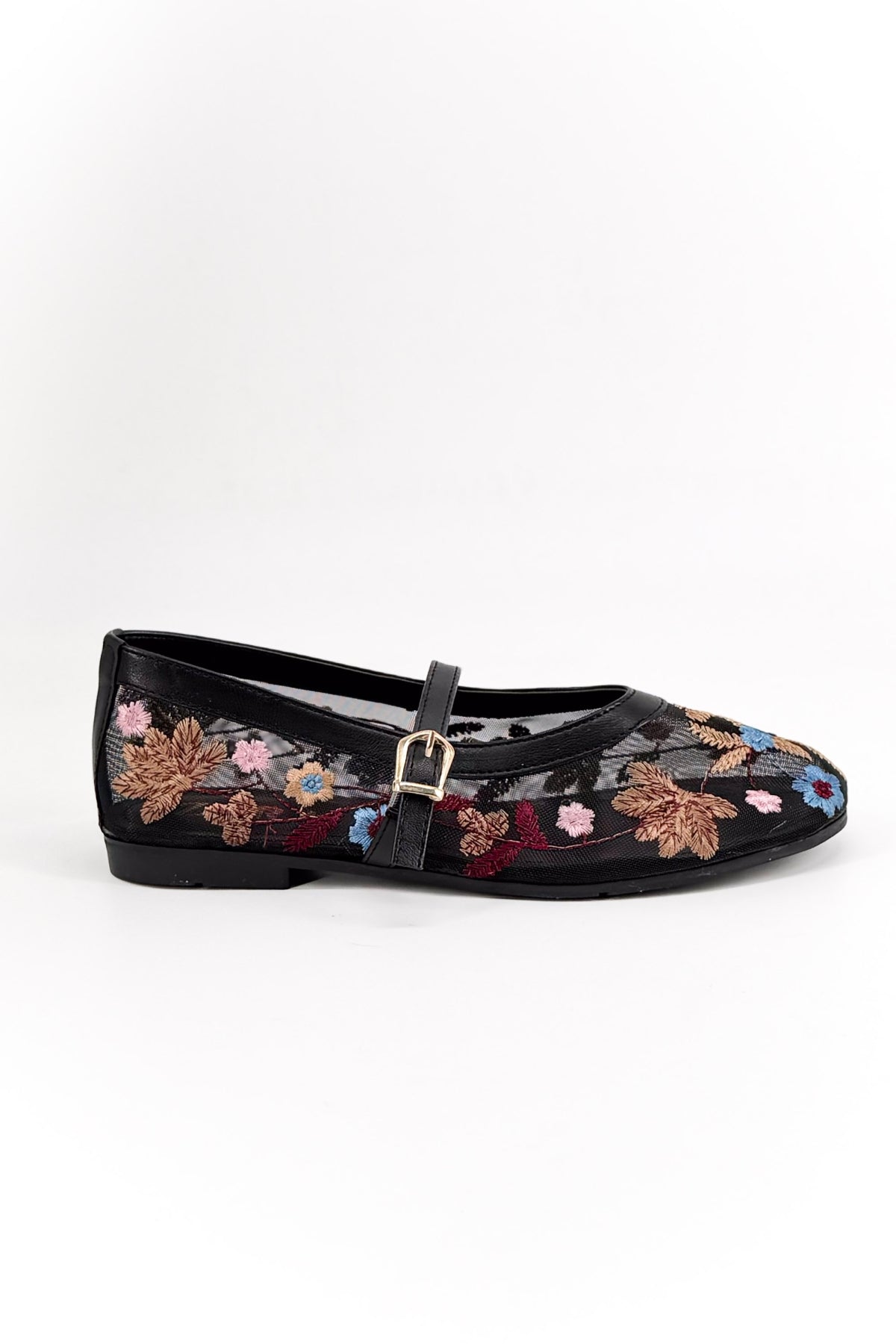 Pety Siyah Tül Çiçek Nakış Detay Kadın Babet