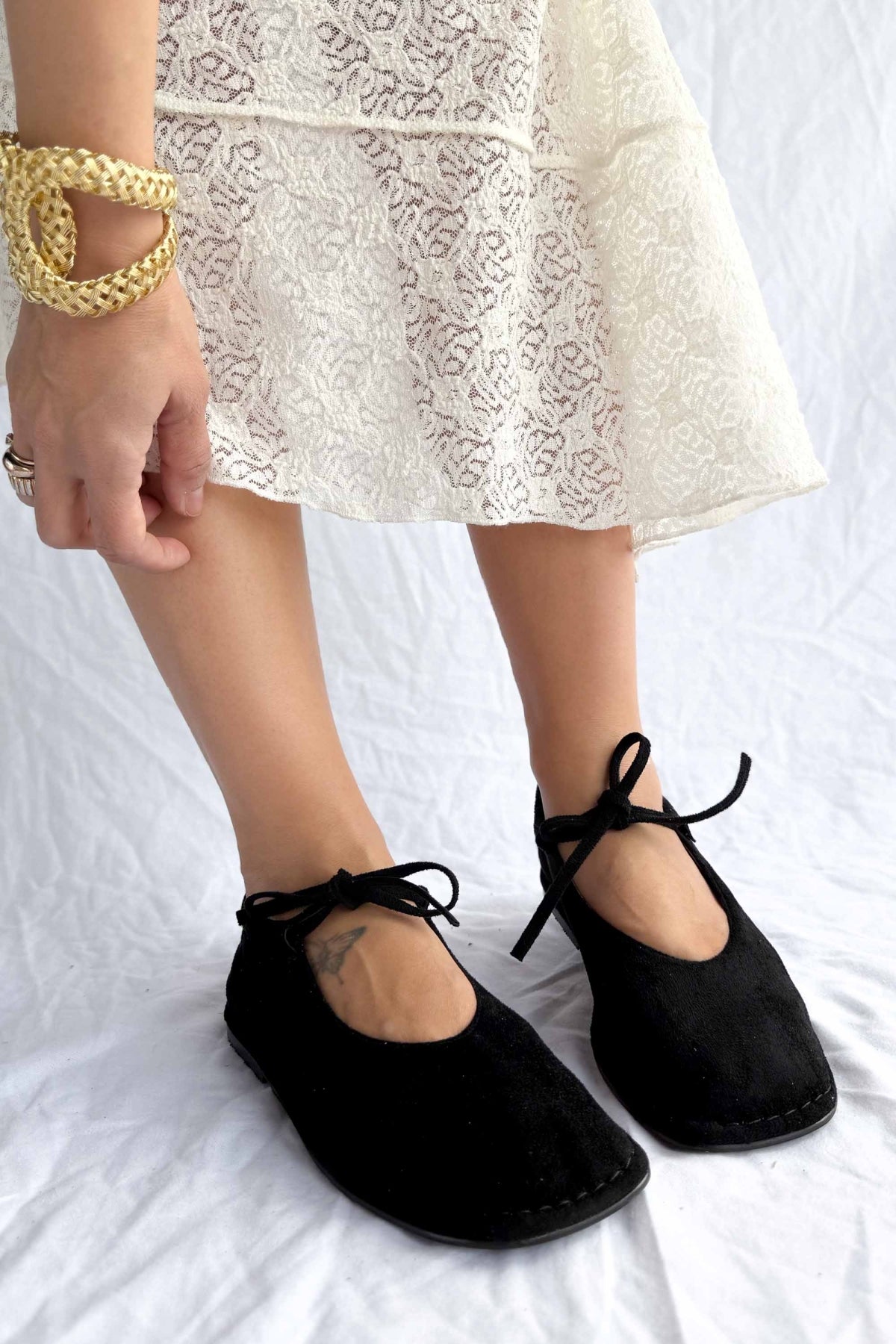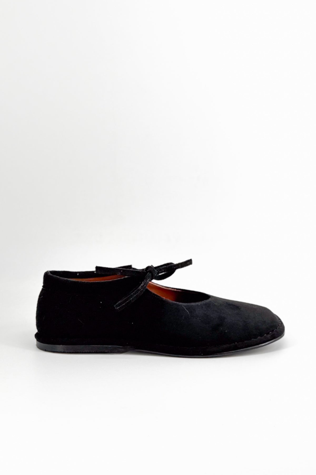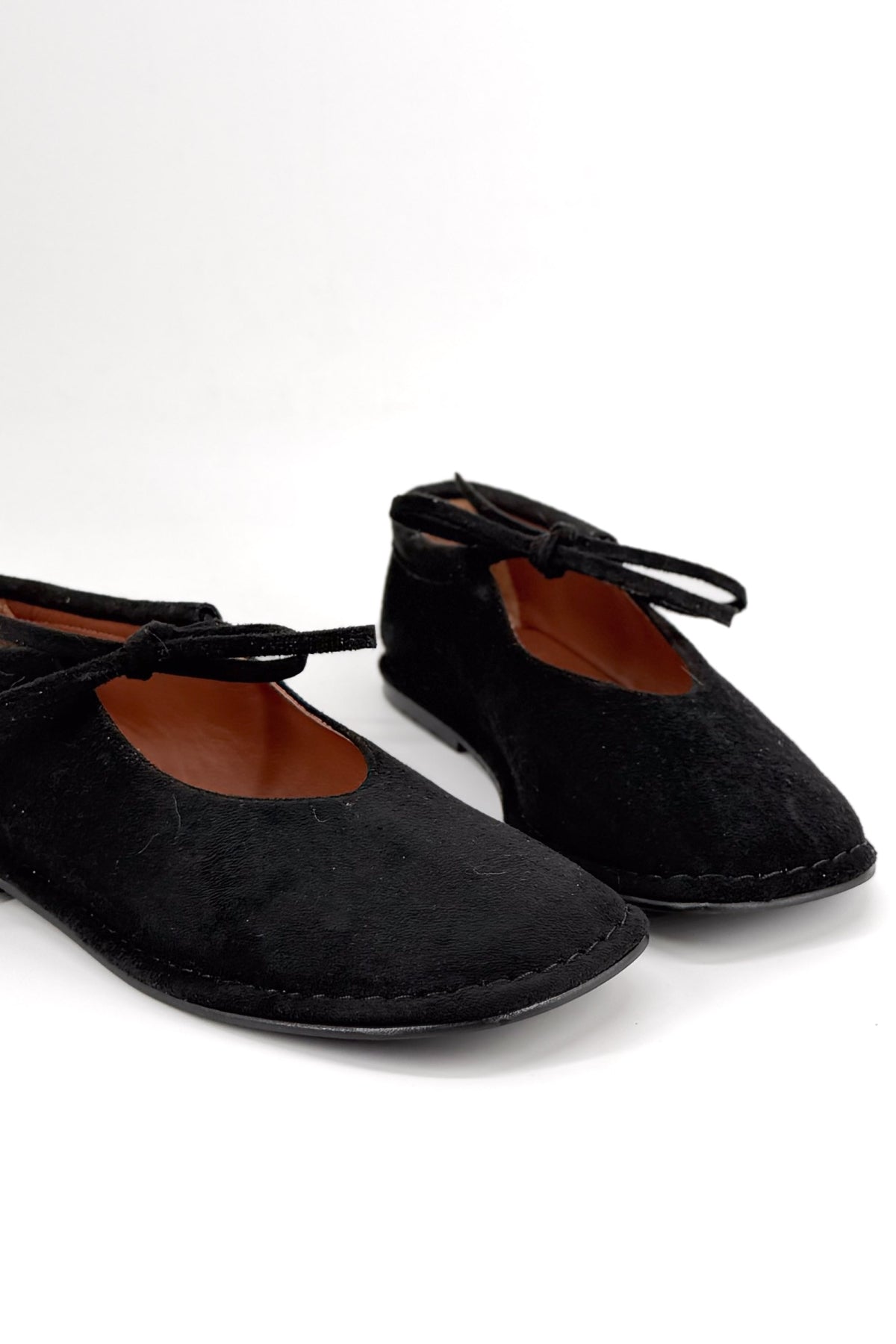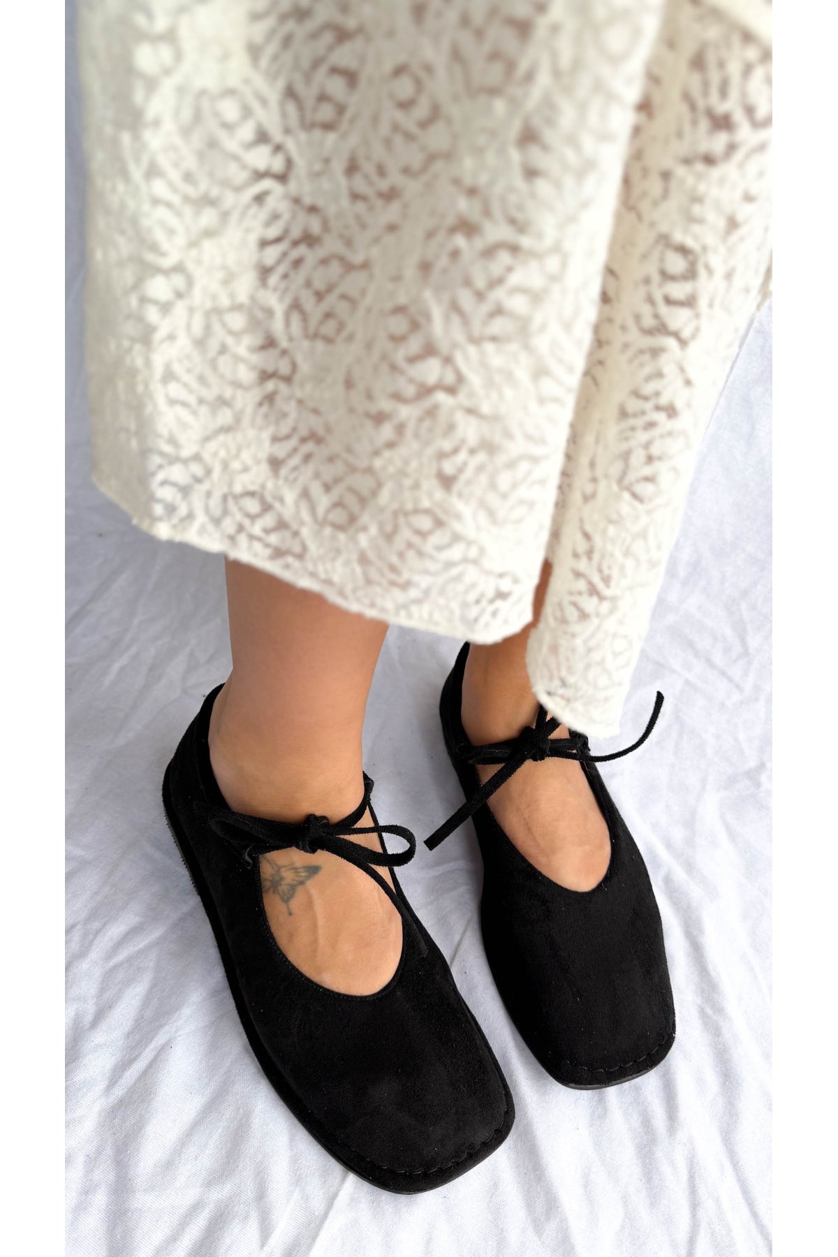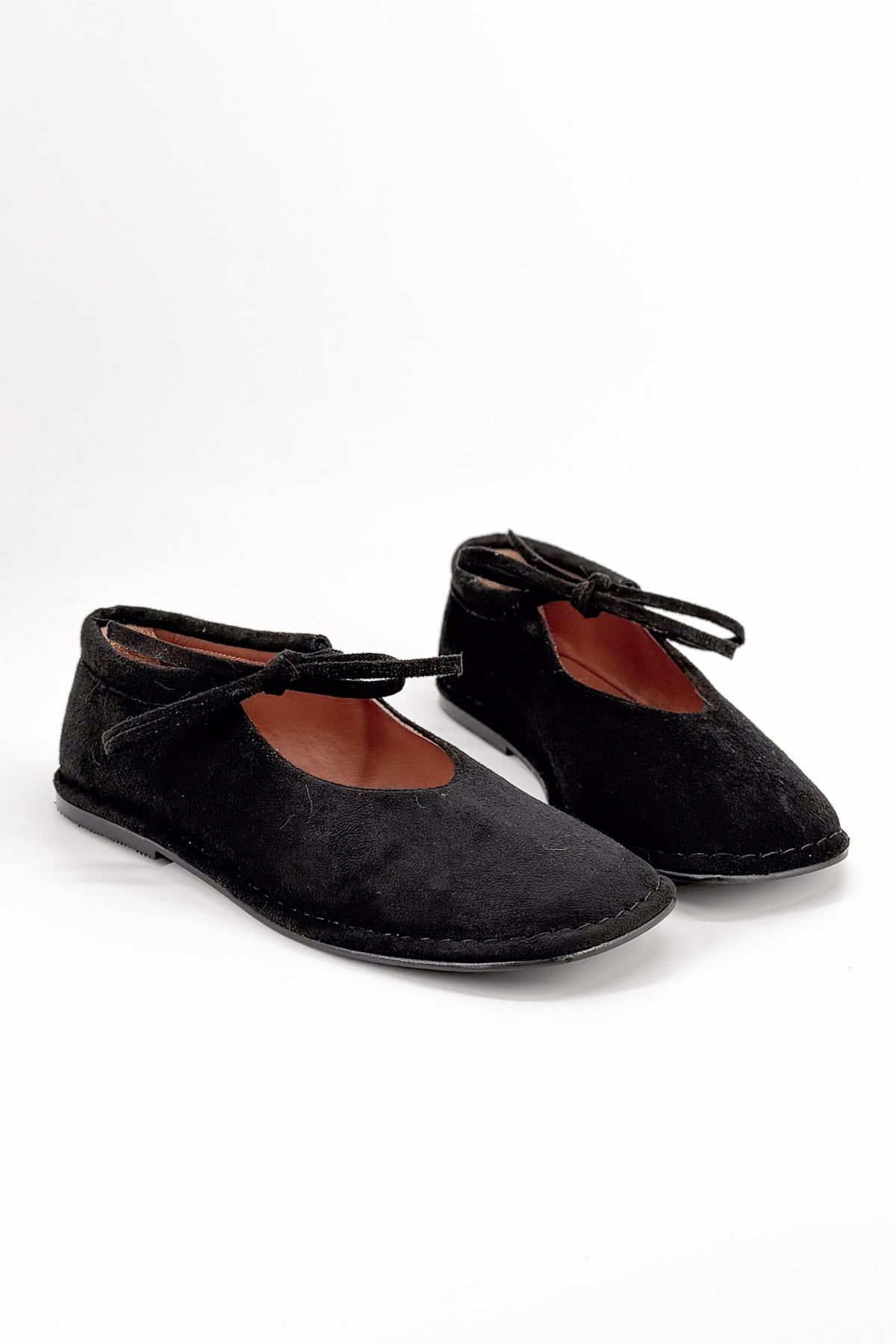 Solid Siyah Süet Bagcıklı Genıs Kesım Kadın Babet