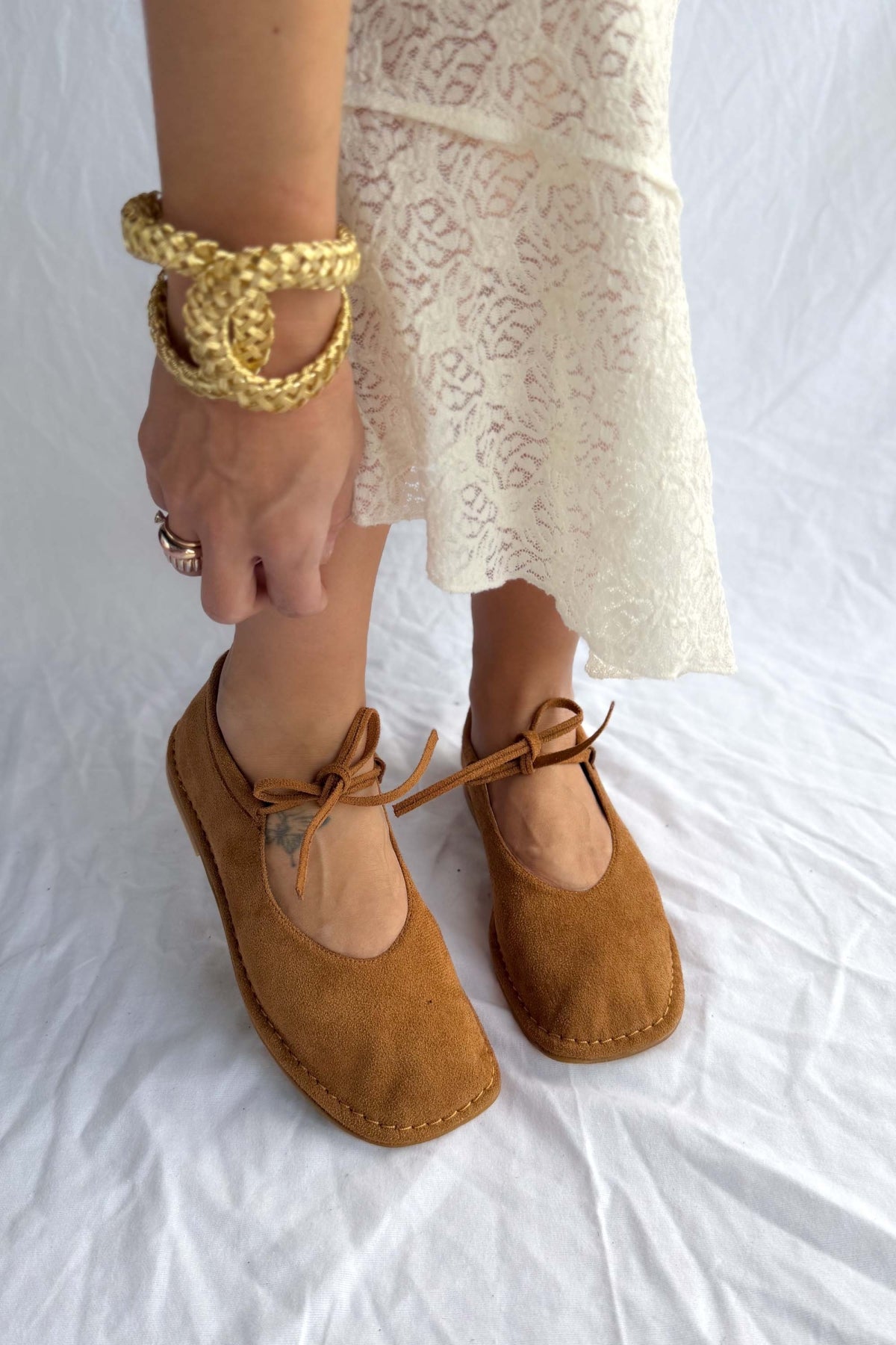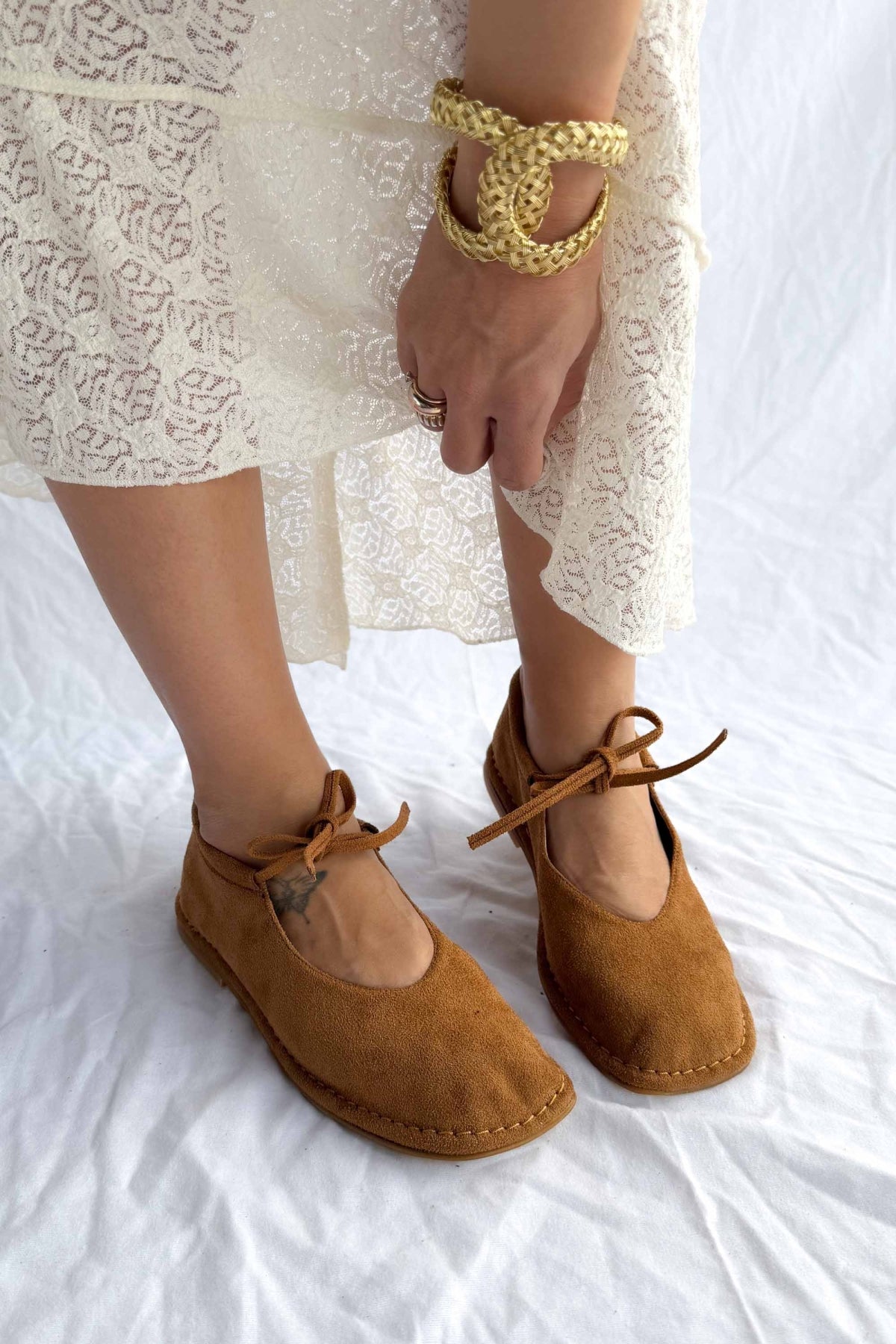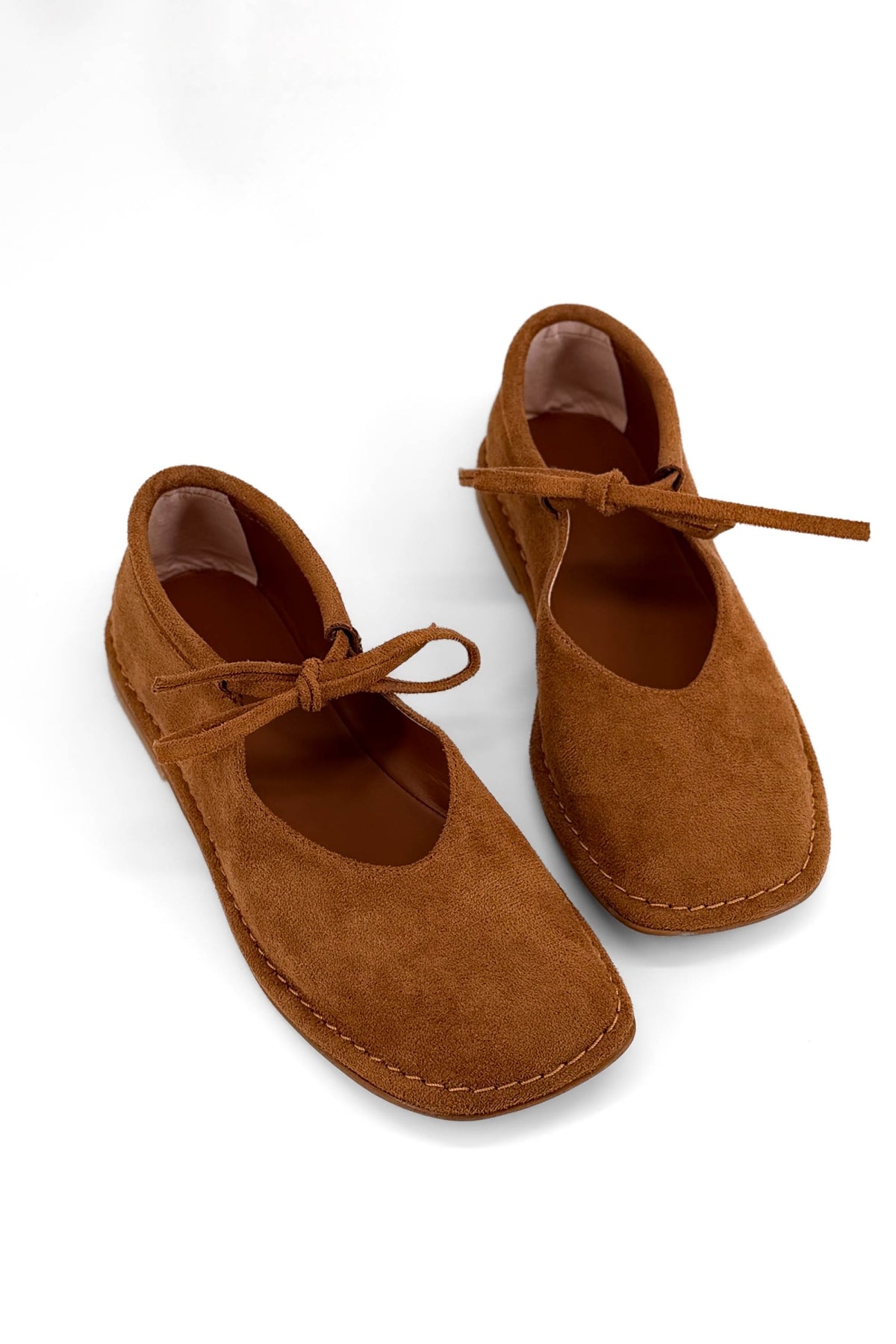 Solid Taba Süet Bagcıklı Genıs Kesım Kadın Babet