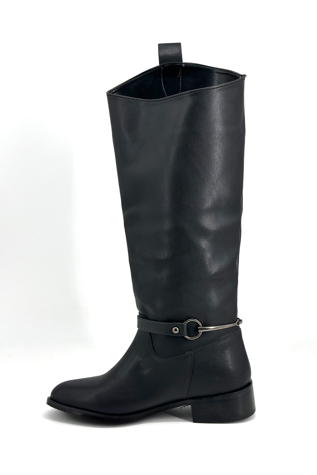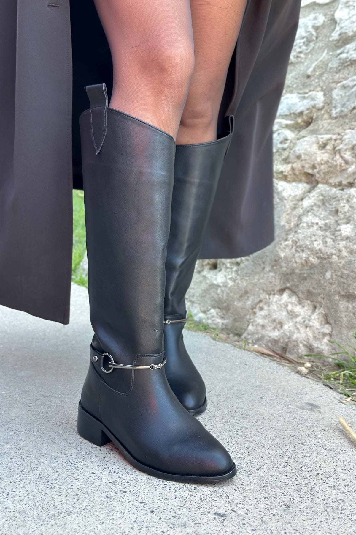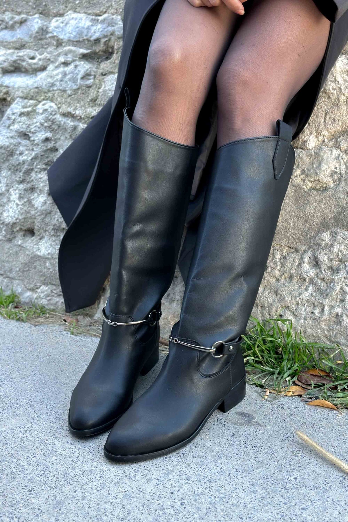 Vola Siyah Deri Toka Detay Kadın Çizme