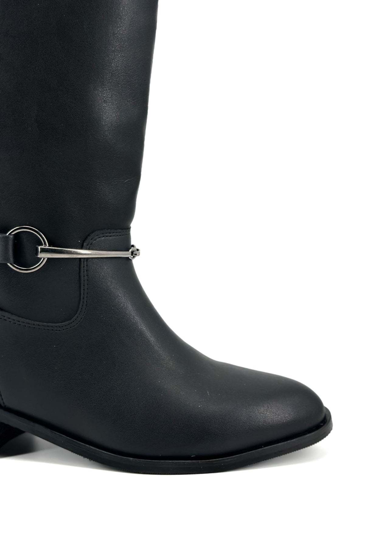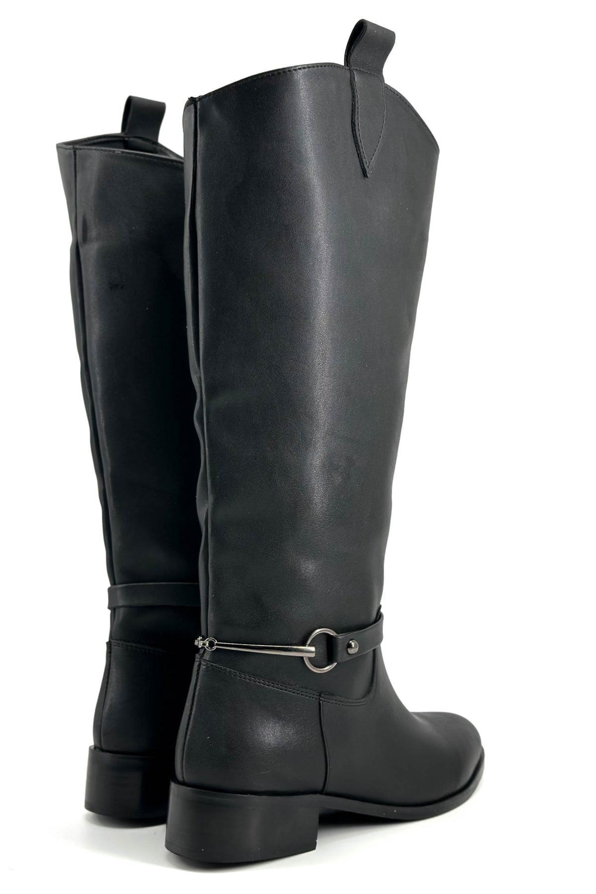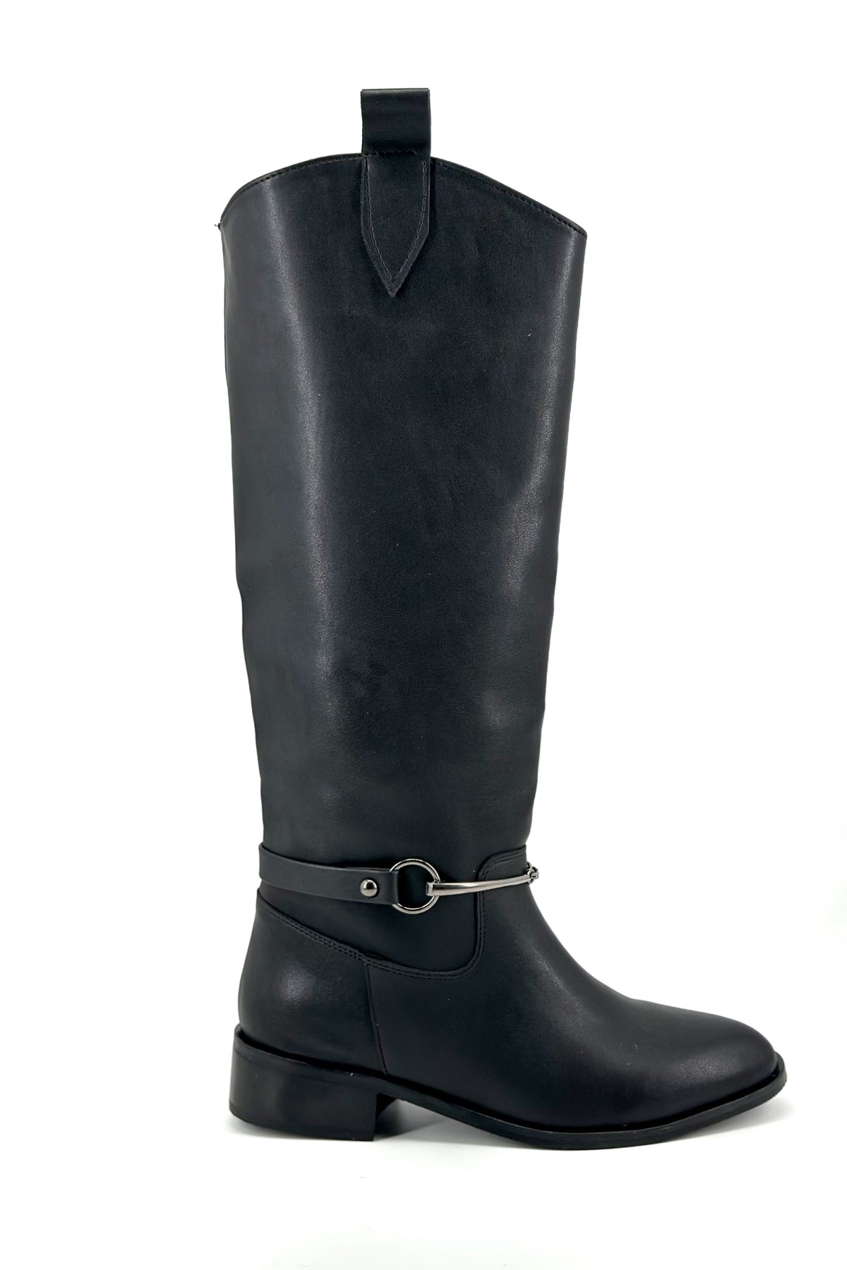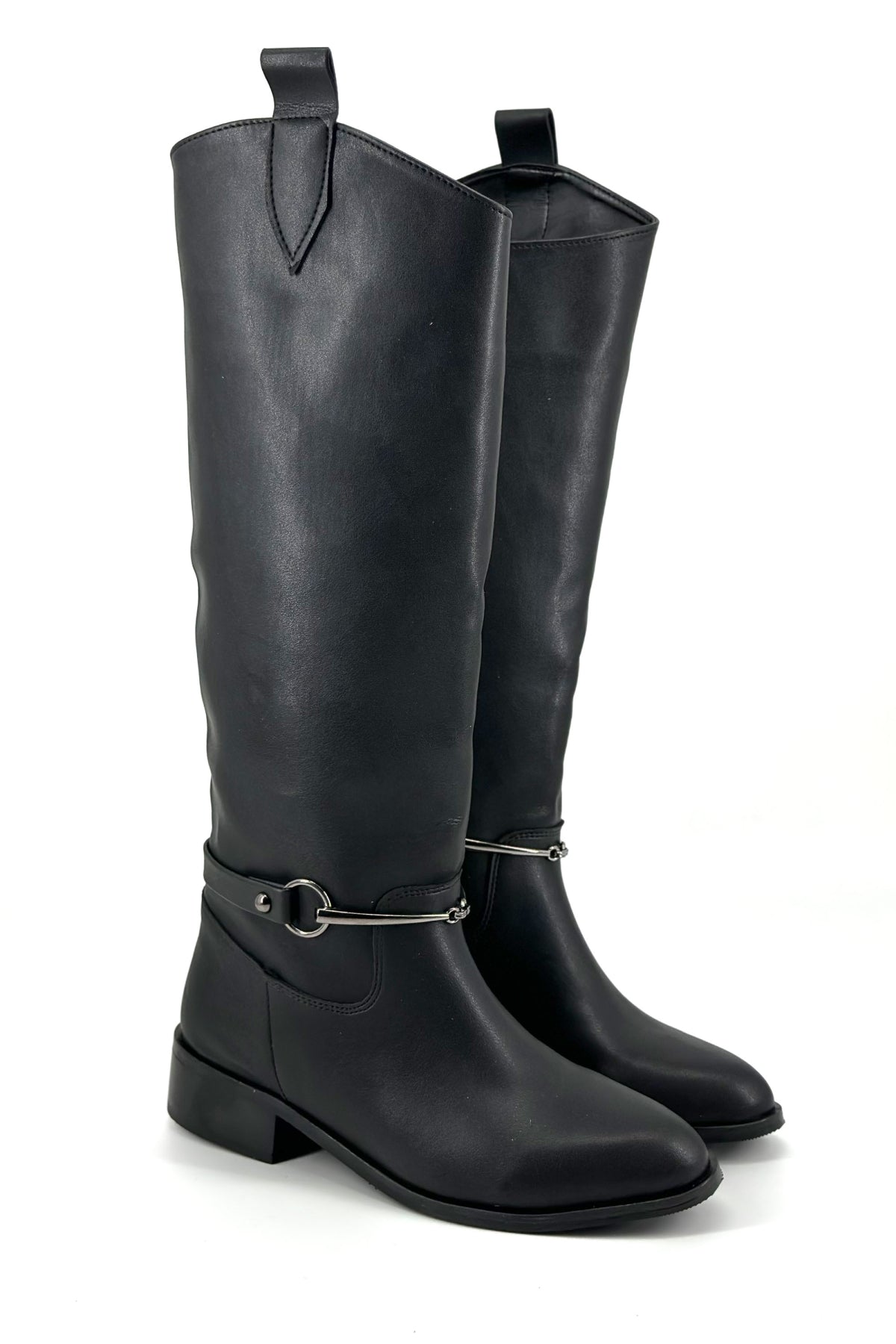 Vola Siyah Deri Toka Detay Kadın Çizme